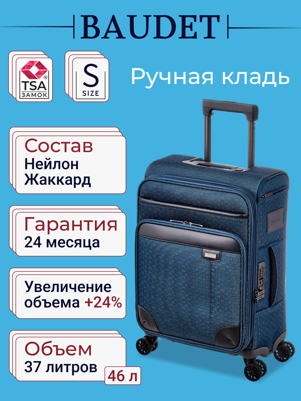 10 цен на Чемодан BAUDET, 37 л, размер S, голубой/серый