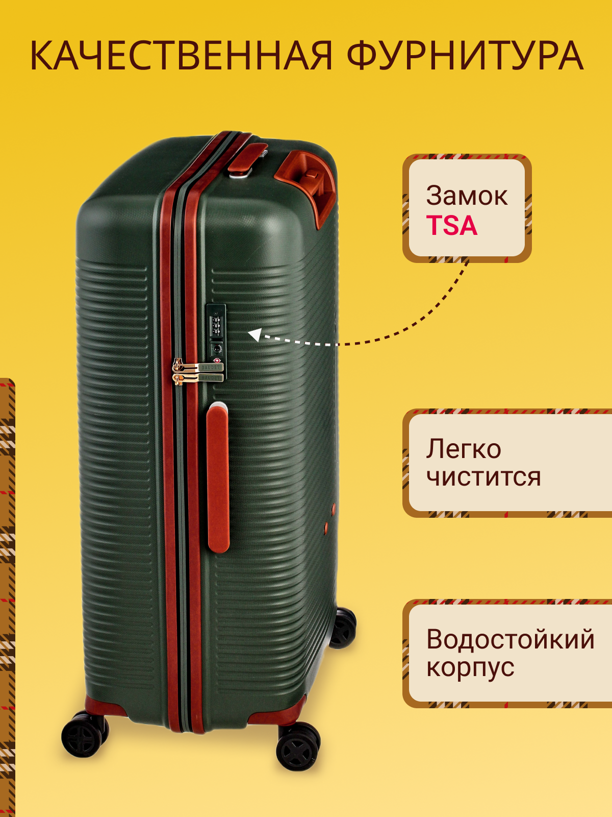 Чемодан BAUDET, 118 л, размер L, темно-зеленый, коричневый информация: