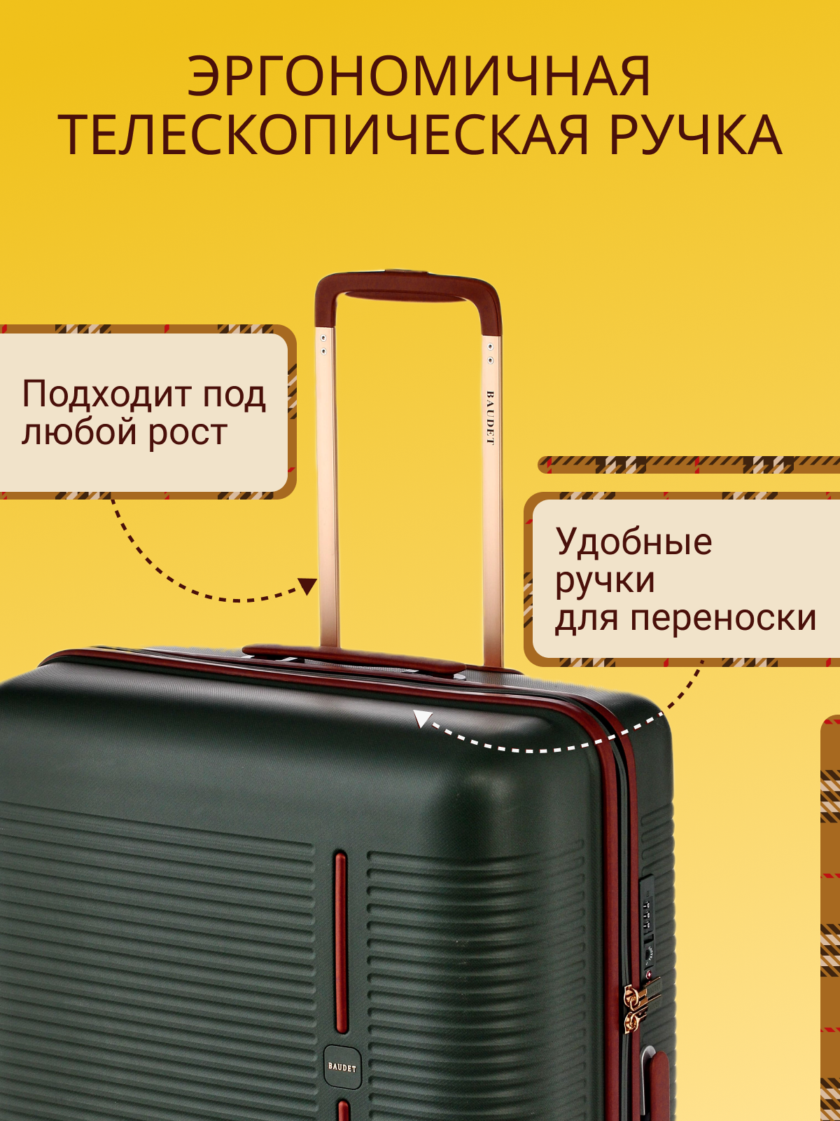 10 цен на Чемодан BAUDET, 118 л, размер L, темно-зеленый, коричневый