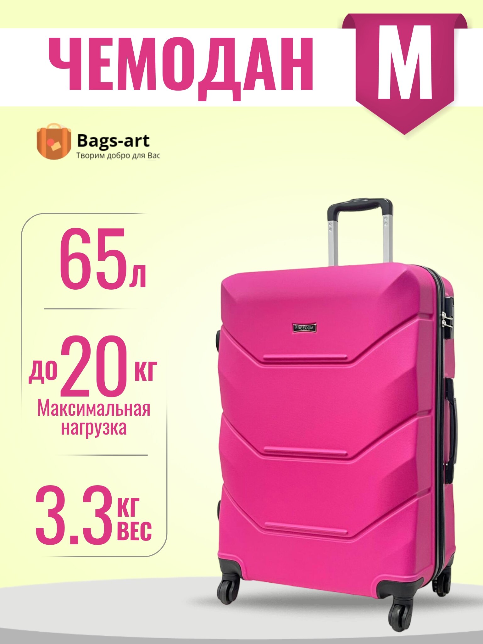 Чемодан Freedom, 65 л, размер M, темно-розовый информация: