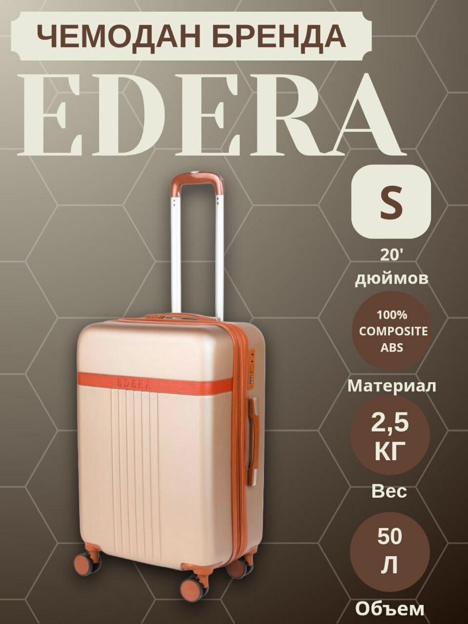 10 цен на Чемодан EDERA, 47 л, размер 20", Шампань/Ivory gold