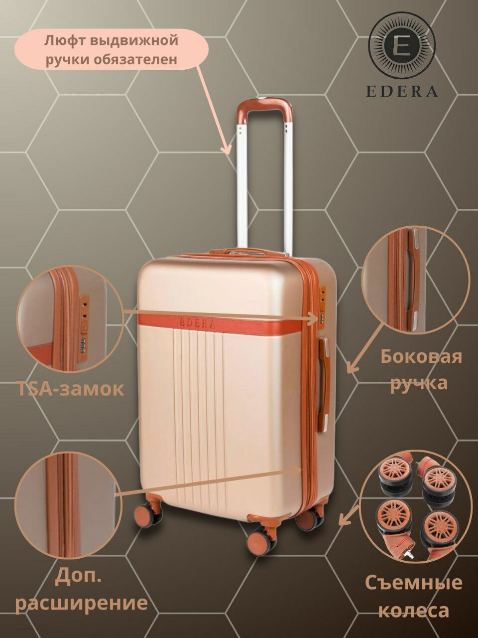 Чемодан EDERA, 47 л, размер 20", Шампань/Ivory gold информация: