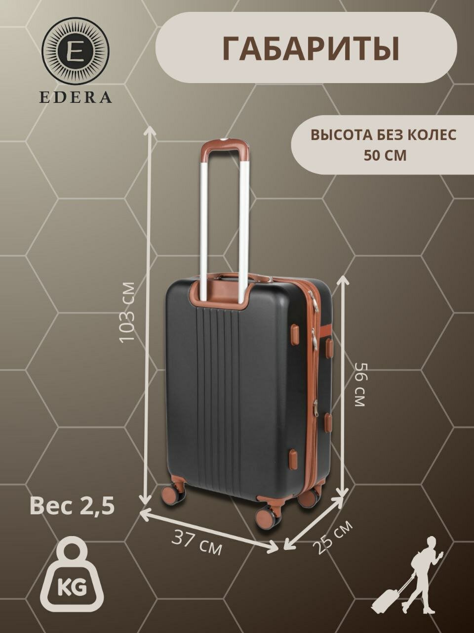 Чемодан EDERA, 77 л, размер 24", Шоколадный 6 240 ₽