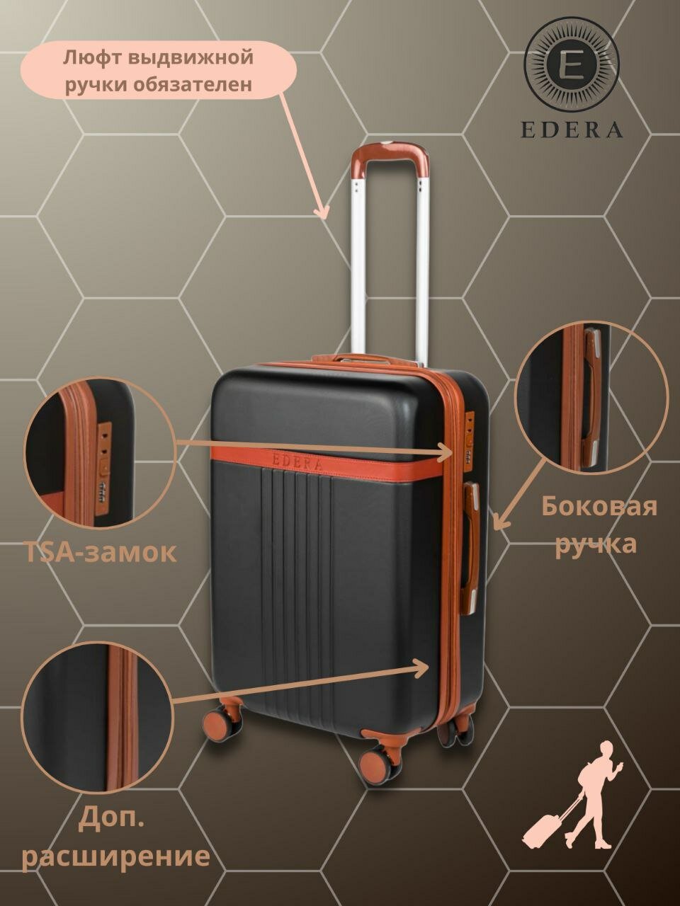 Чемодан EDERA, 47 л, размер 20", черный