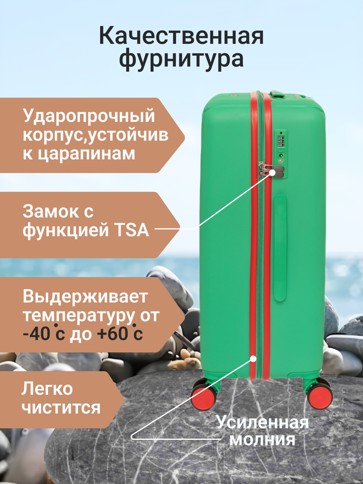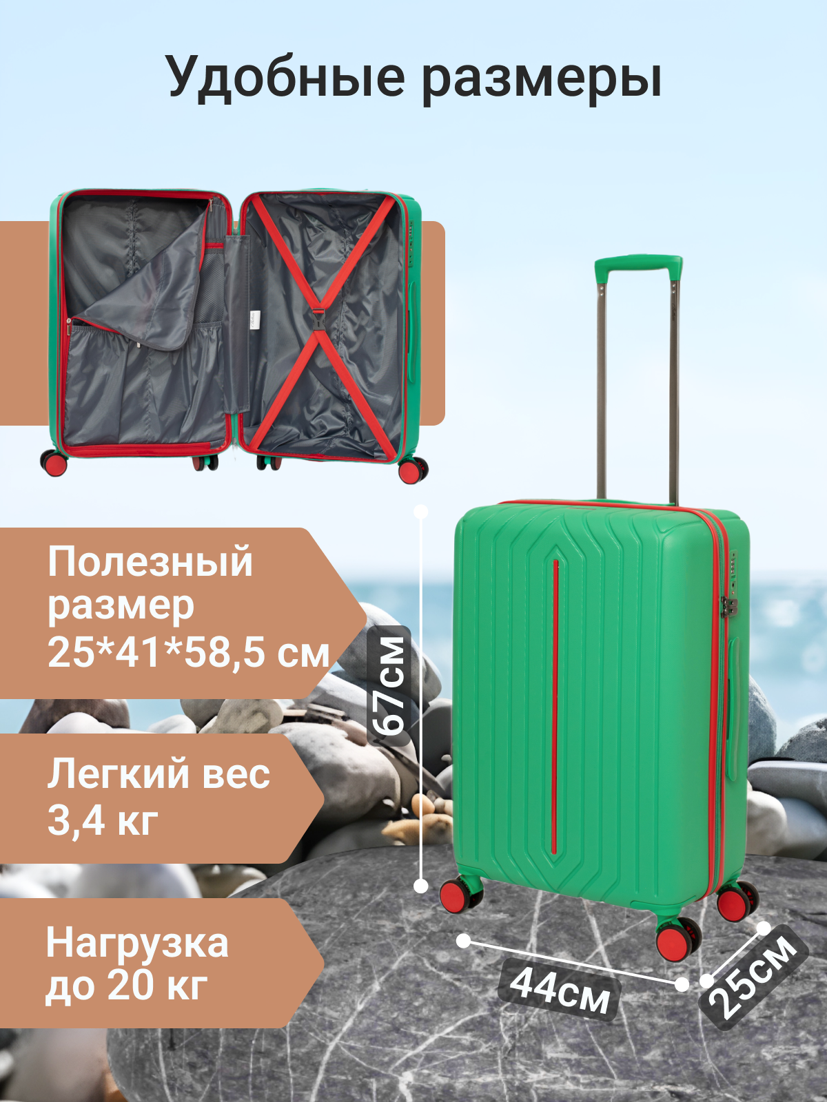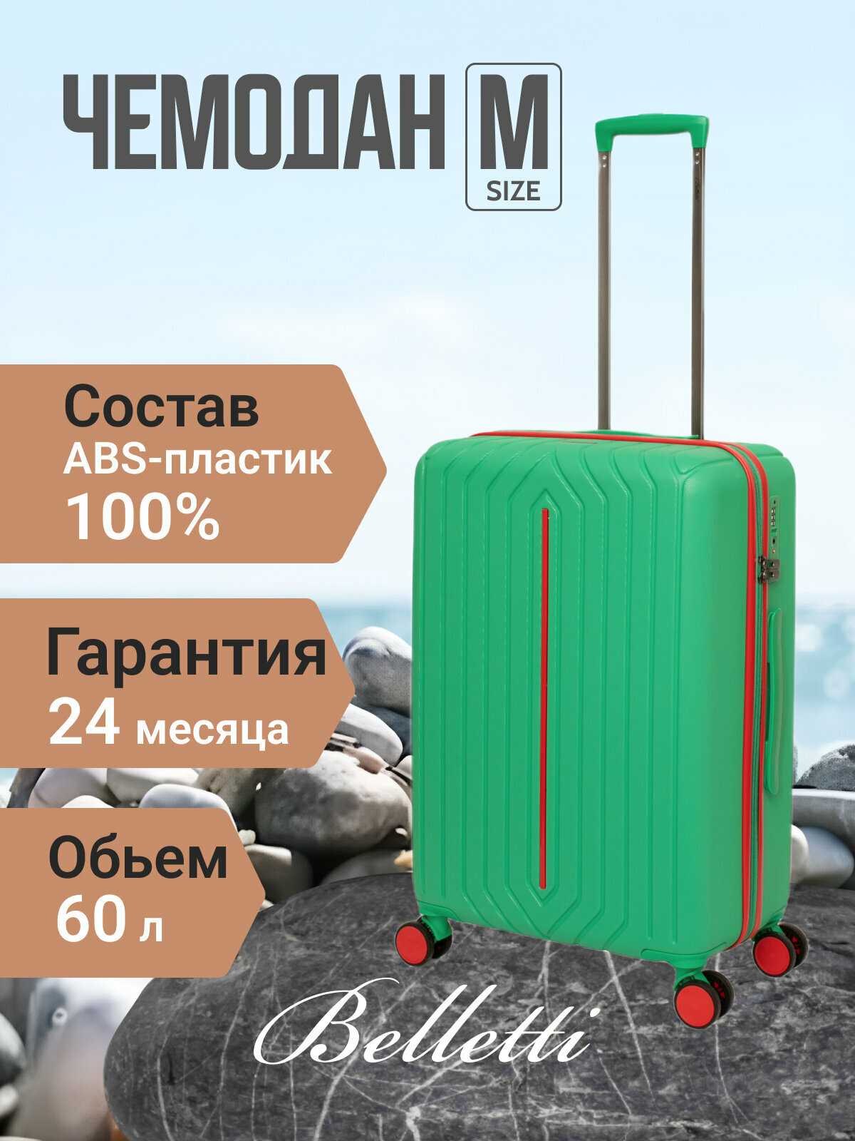 Чемодан Belletti, 60 л, размер M, зеленый/красный информация: