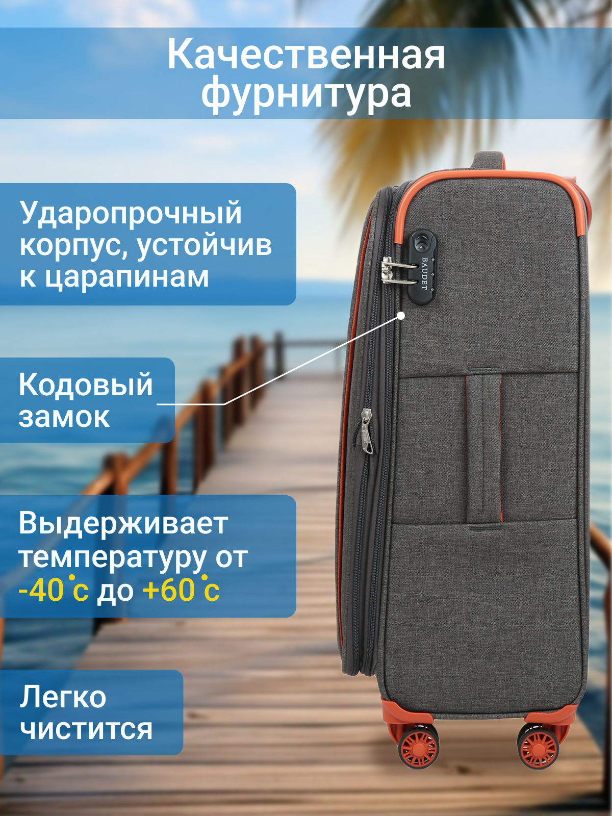 Чемодан BAUDET, 68 л, размер M, серый/оранжевый информация: