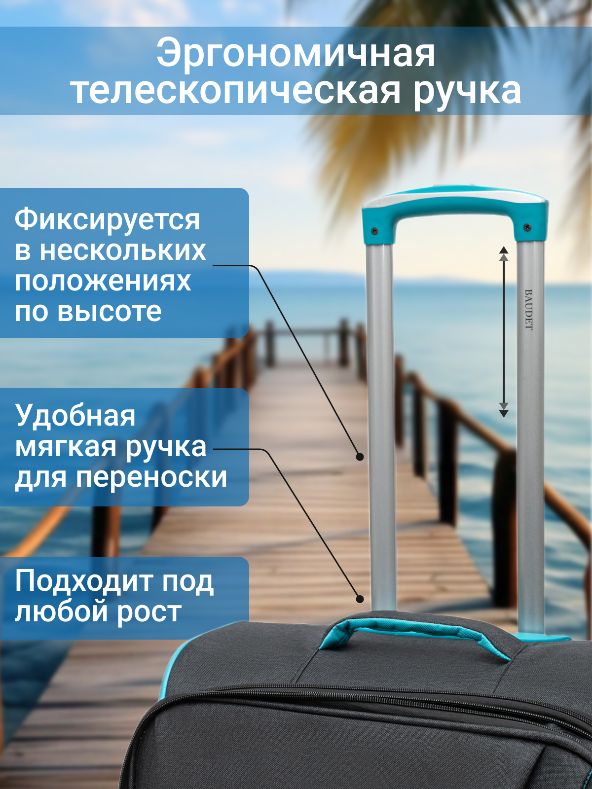 10 цен на Чемодан BAUDET, 68 л, размер M, черный/голубой
