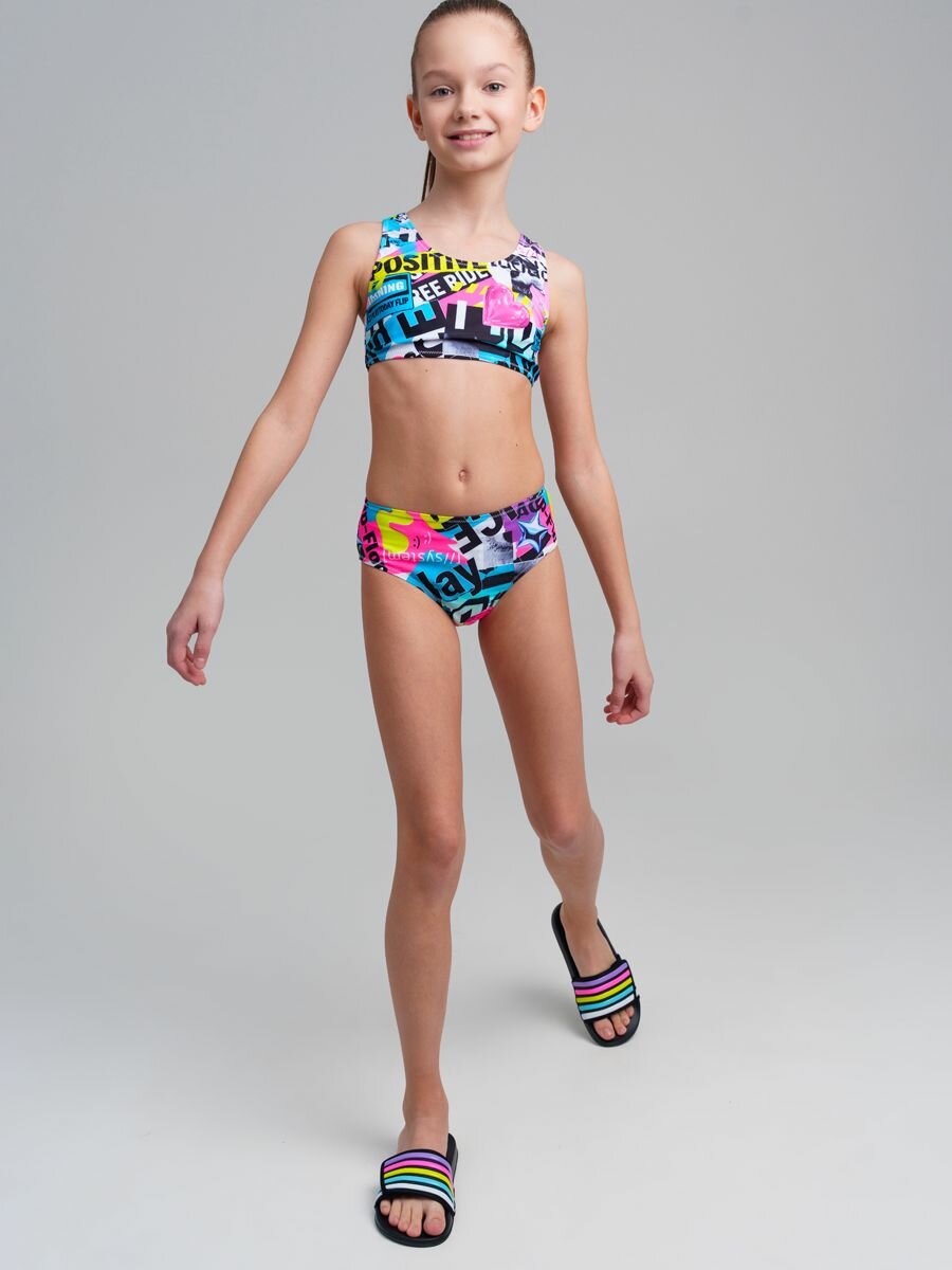 Купальник playToday Весна-лето 2025, размер 170, черный/голубой/розовый информация: