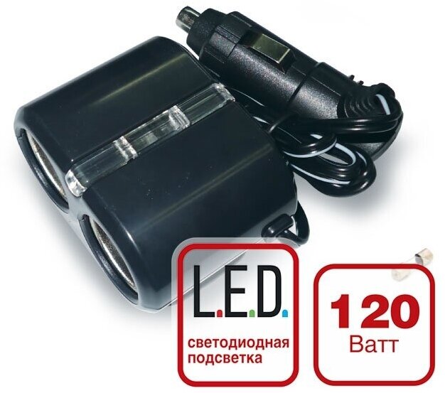 Штекер автоприкуривателя Premier PR 3-417 разветвитель на 2 гнезда 12В витой шнур 1.5м