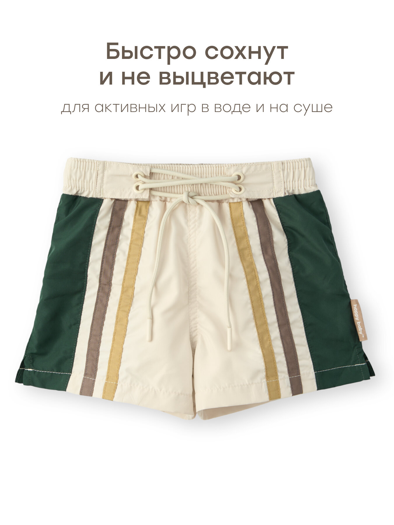 10 цен на Шорты для плавания Happy Baby Весна-лето 2025, размер 104-110, бежевый/зеленый