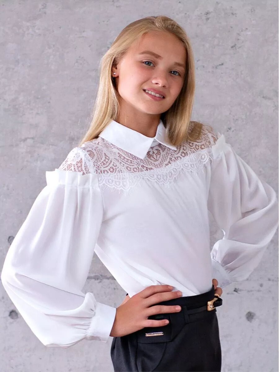 Школьная блуза Праздничная, нарядная, размер 152-42, белый 2 159 ₽