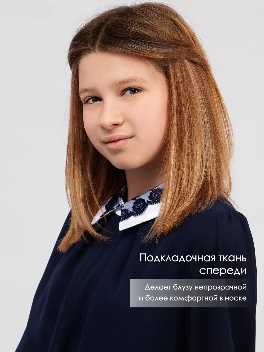 Школьная блуза, размер 140-38, синий, белый 2 000 ₽