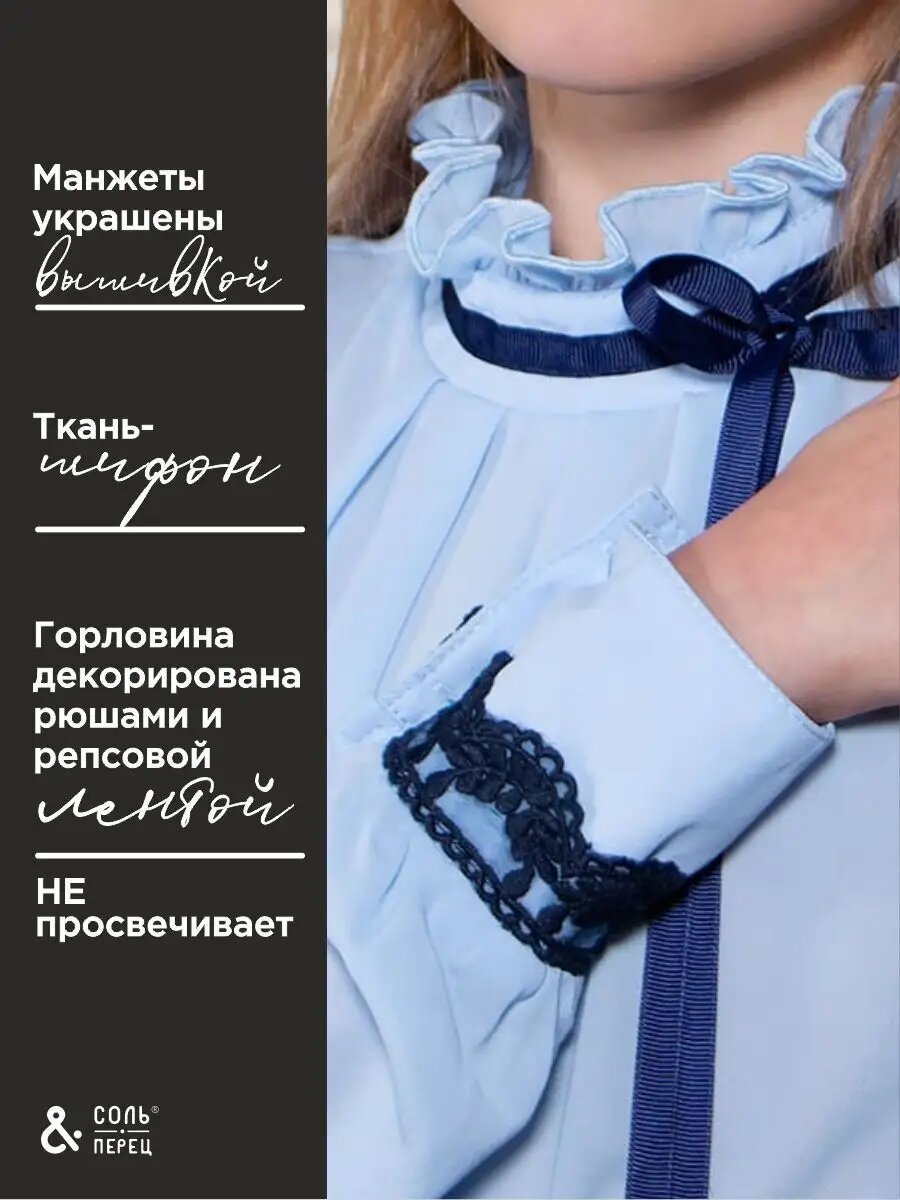 Школьная блуза Соль&Перец, размер 34(122-128), голубой/синий 1 869 ₽