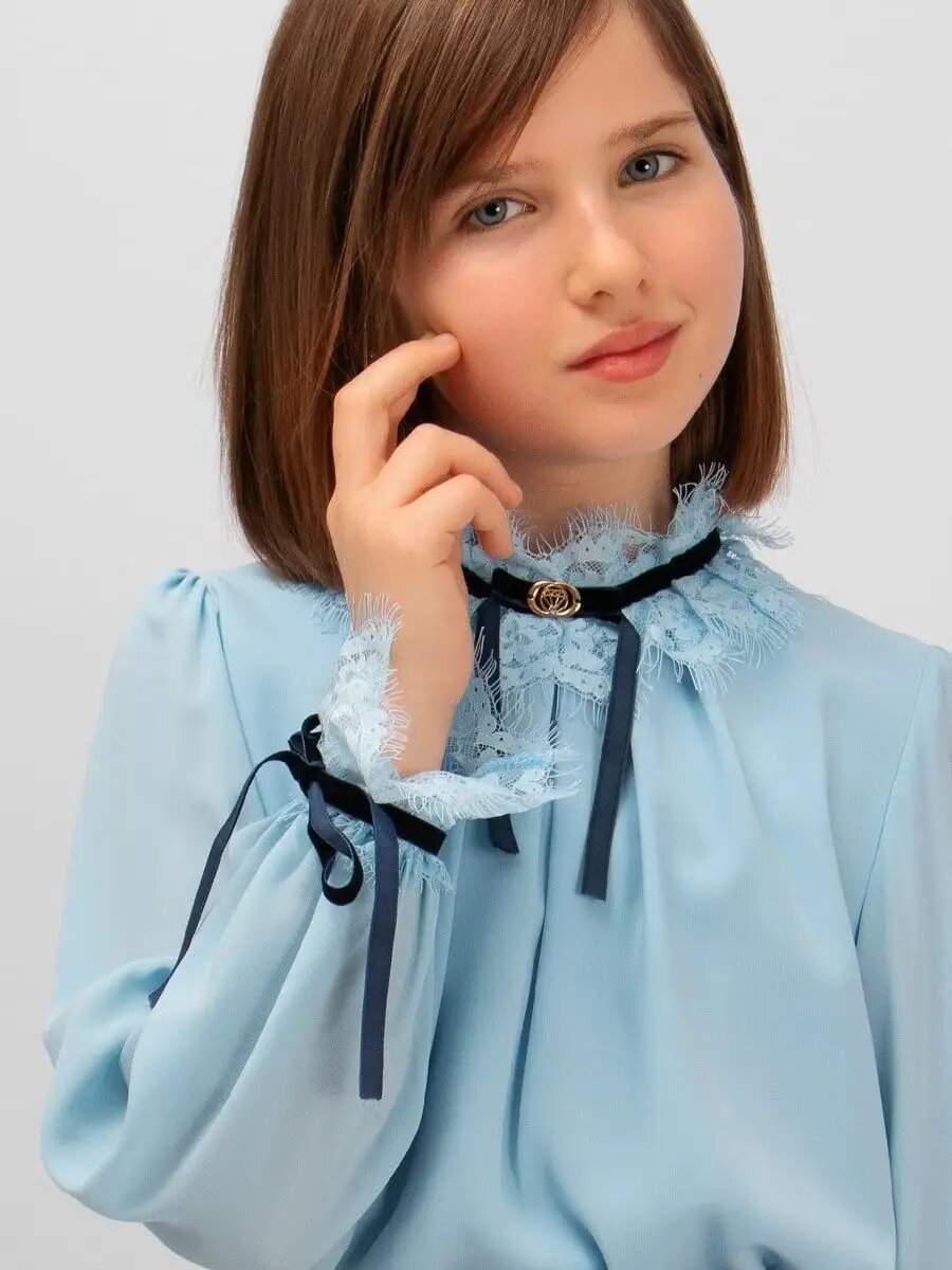 Школьная блуза Нарядная школьная коллекция, размер 146-40, голубой, белый 2 139 ₽