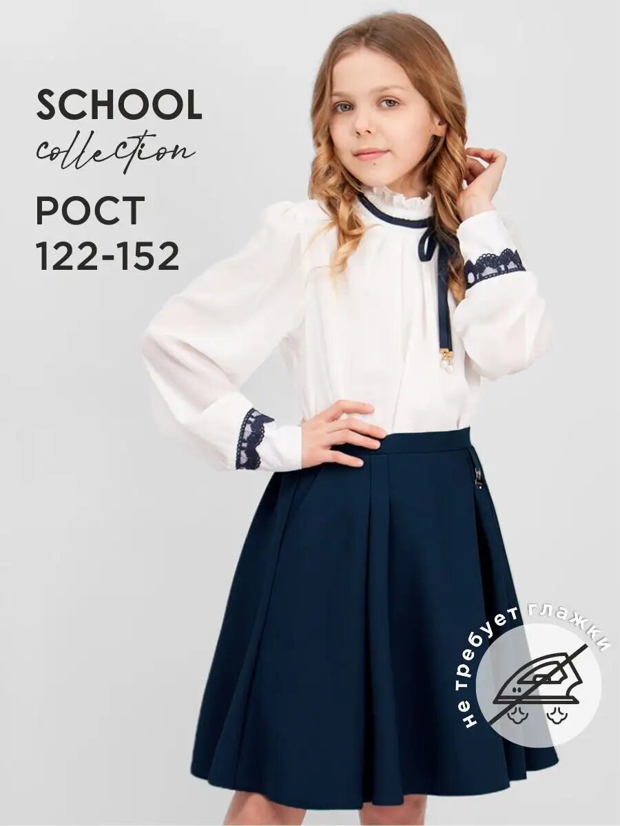 Школьная блуза, размер 146-40, белый/синий 2 001 ₽