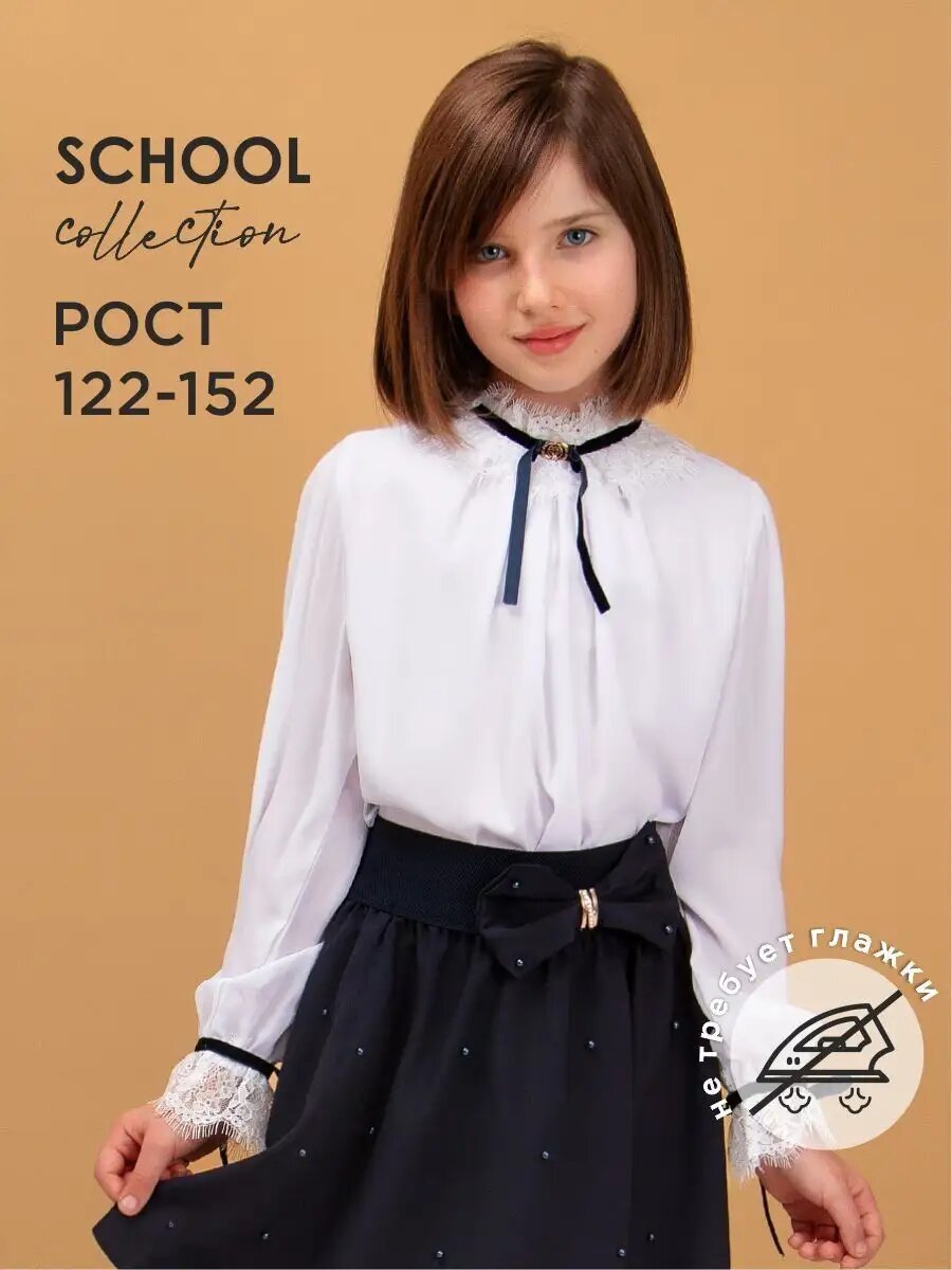 Школьная блуза Праздничная, нарядная, размер 152-42, белый 2 159 ₽