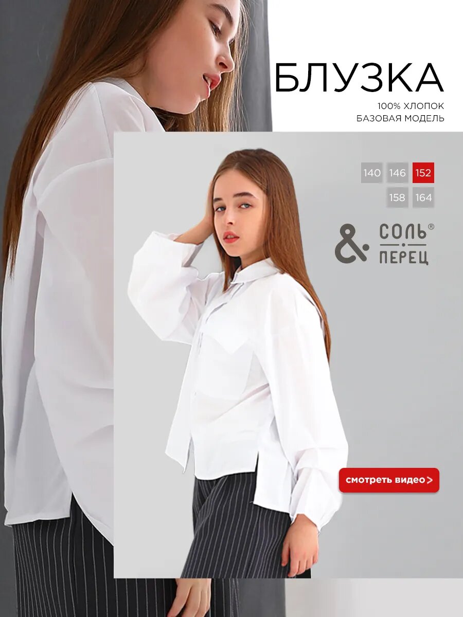 Школьная блуза Соль&Перец, размер 140-146, белый информация: