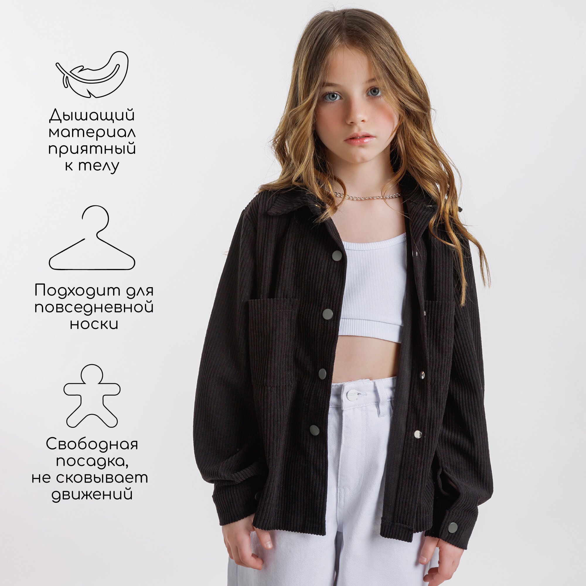 Школьная рубашка Amarobaby VELVET, размер 128, black информация: