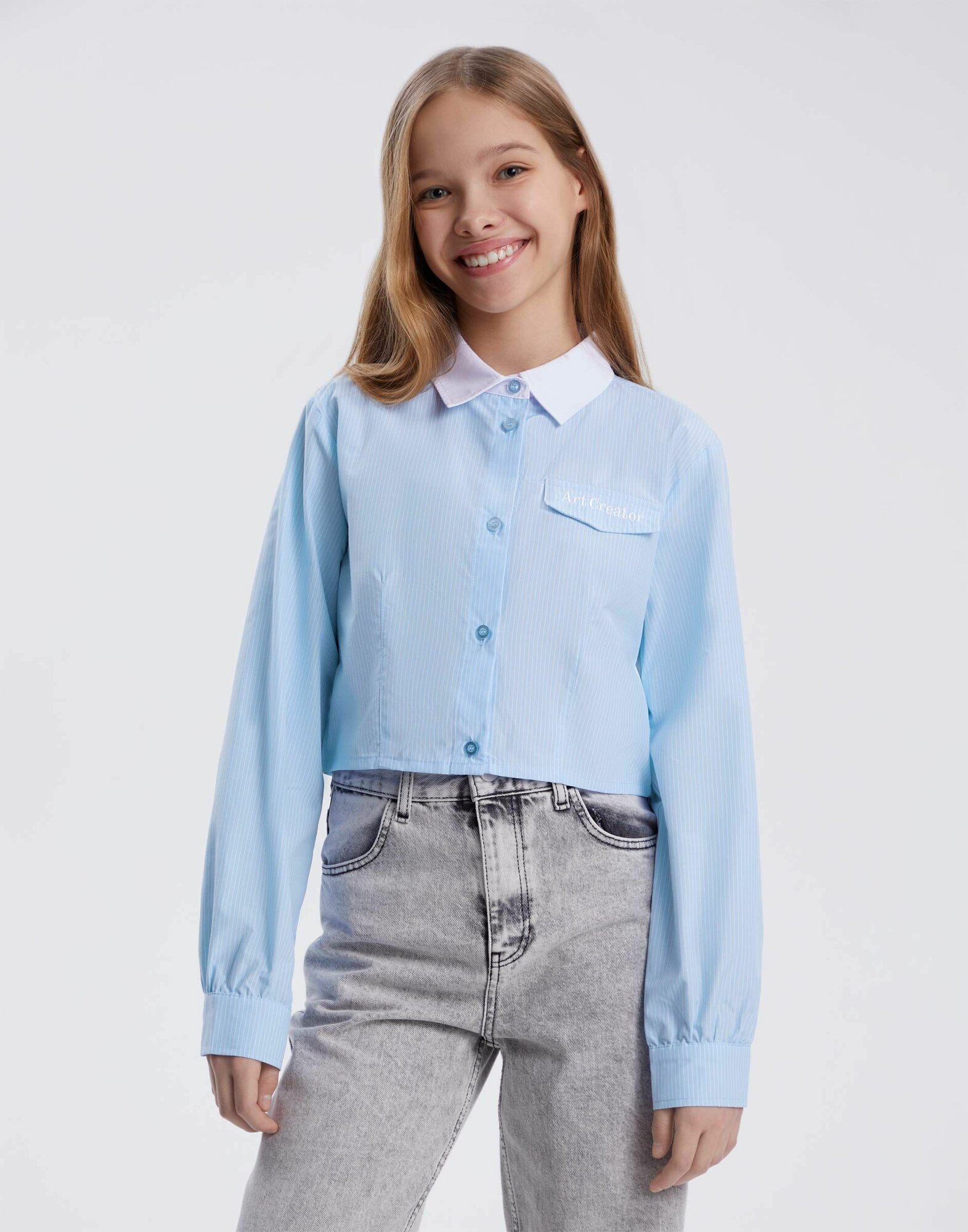 10 цен на Рубашка Gloria Jeans, размер 10-12л/146-152, голубой/белый