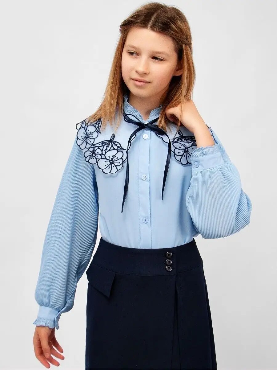 10 цен на Школьная блуза Соль&Перец, размер 122-128, голубой