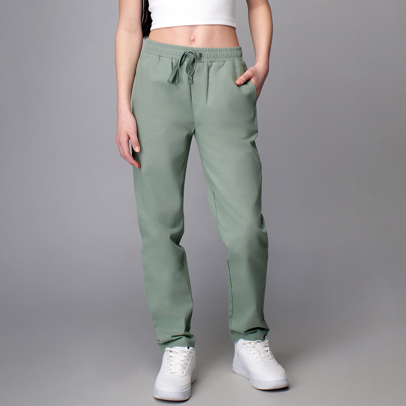 Брюки Happyfox Для девочек, размер 122, полынь информация: