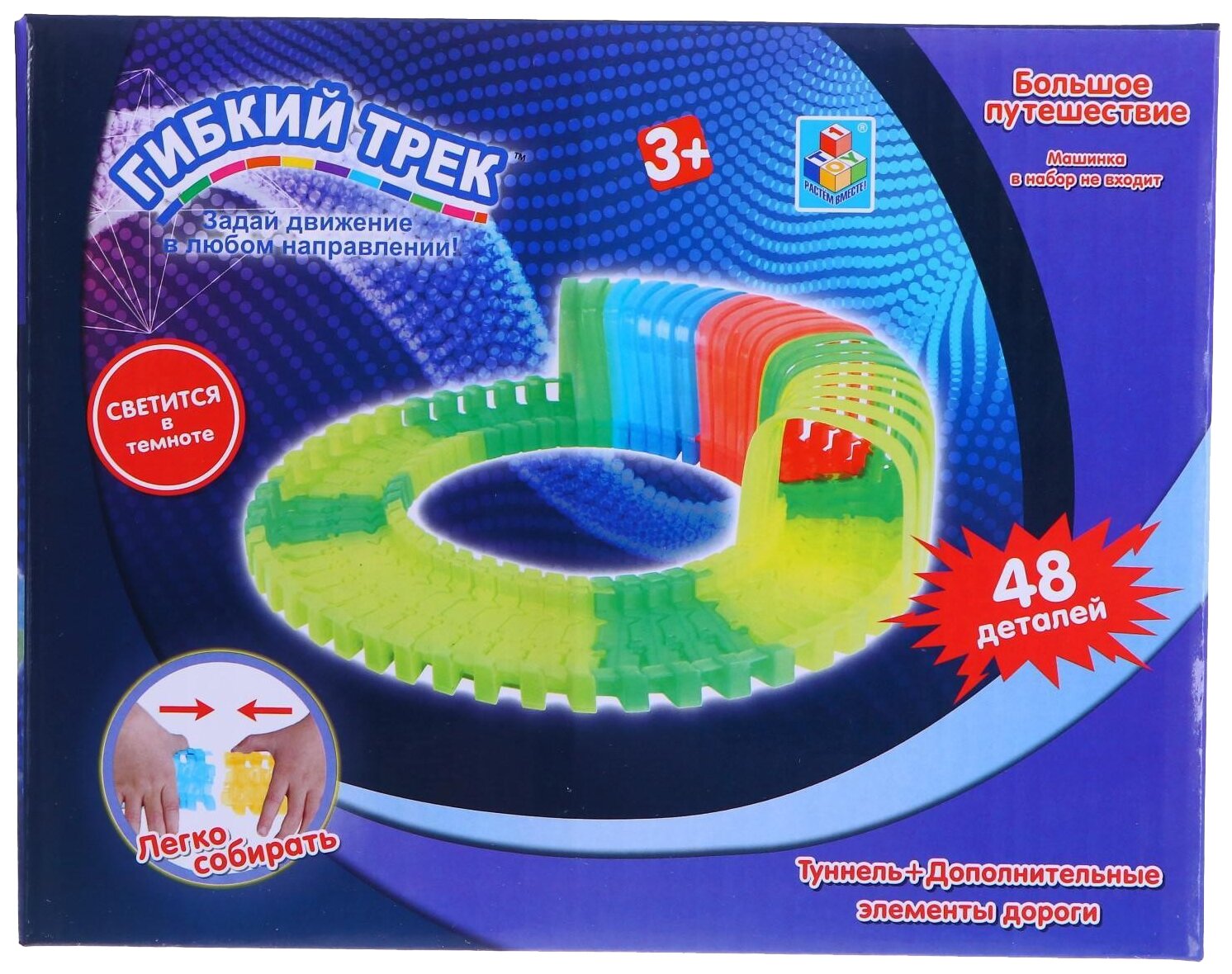 10 цен на Гибкий трек 1Toy "Туннель", 24 простых и 24 светящихся в темноте детали трека (Т13214)