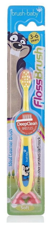 Brush-Baby FlossBrush NEW зубная щётка, 3-6 лет, желтая информация: