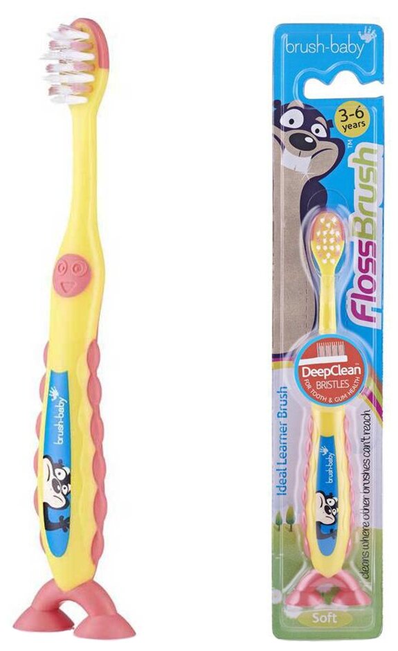 10 цен на Brush-Baby FlossBrush NEW зубная щётка, 3-6 лет, желтая