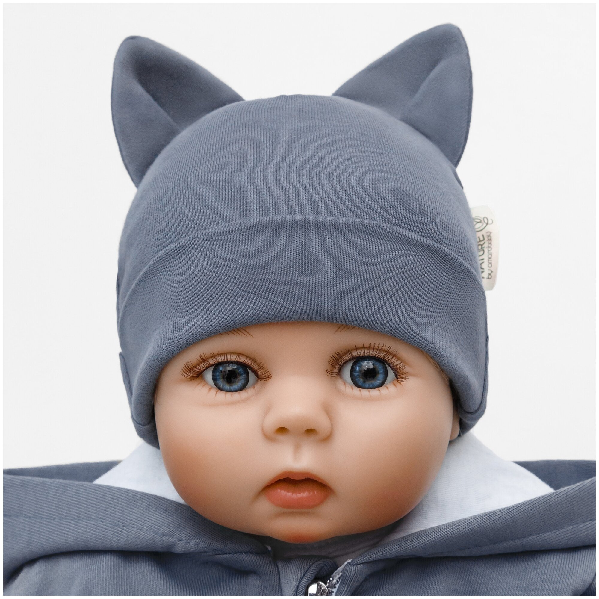 Чепчик Amarobaby Nature essence cat для детей, размер 44-46, голубой, белый
