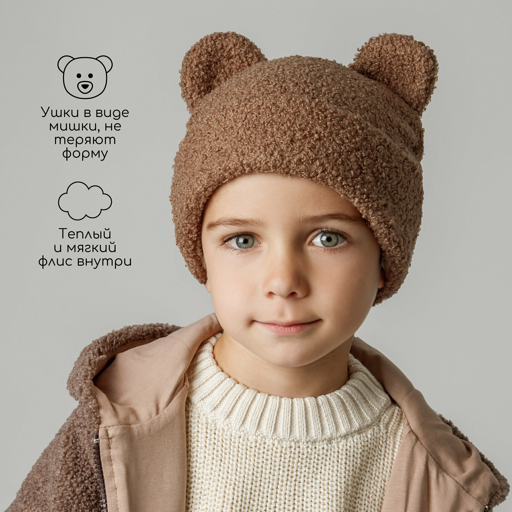 10 цен на Шапка-бини Amarobaby Plush для детей, размер 54, коричневый