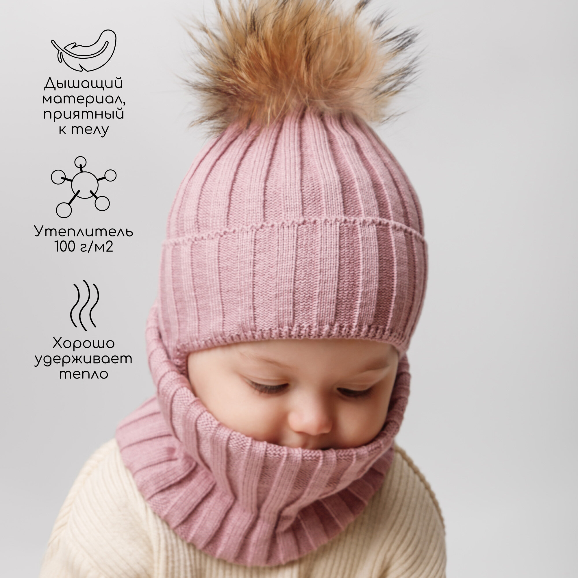 Комплект с головным убором Amarobaby Pure Love Snow для девочек, размер 44-46, пудровый информация: