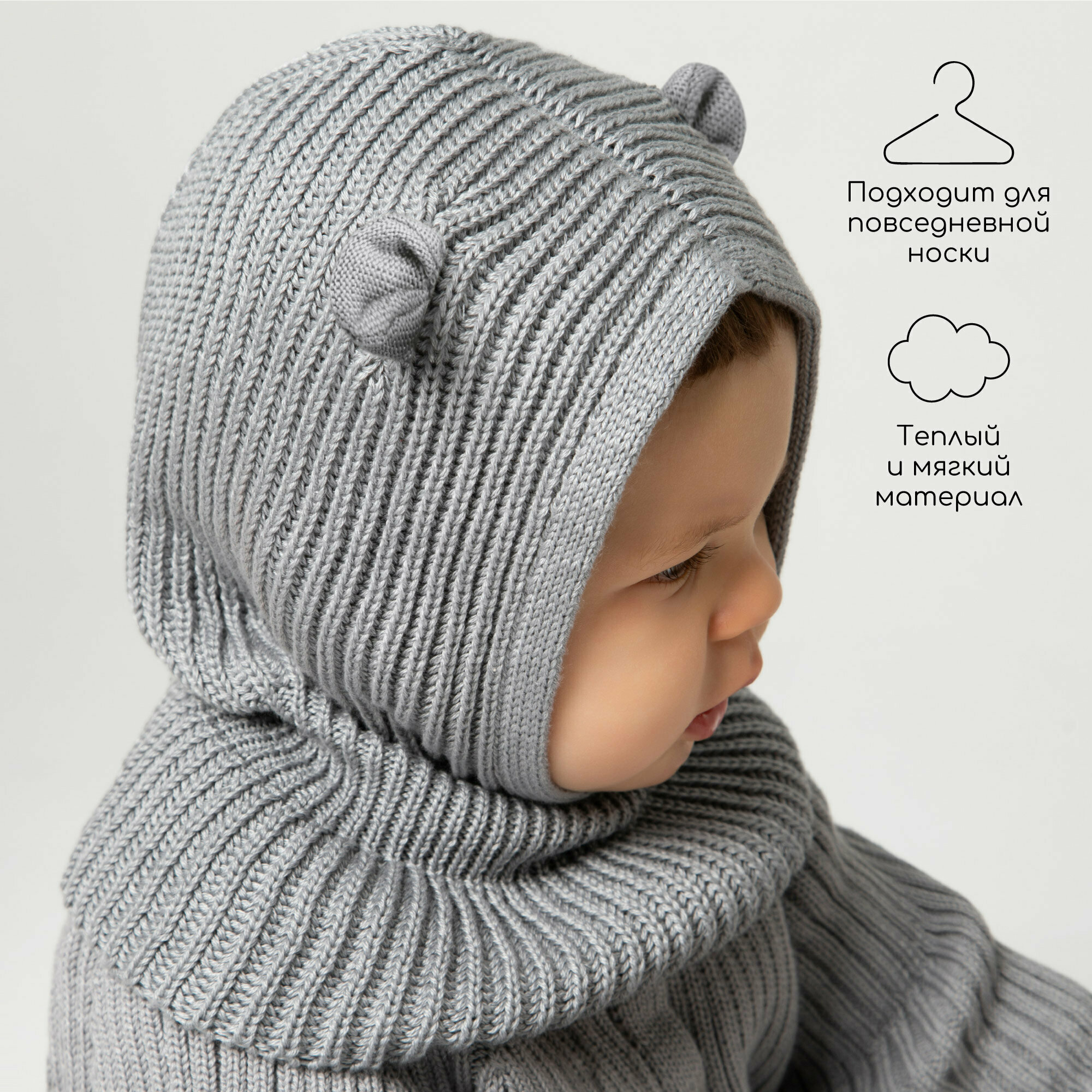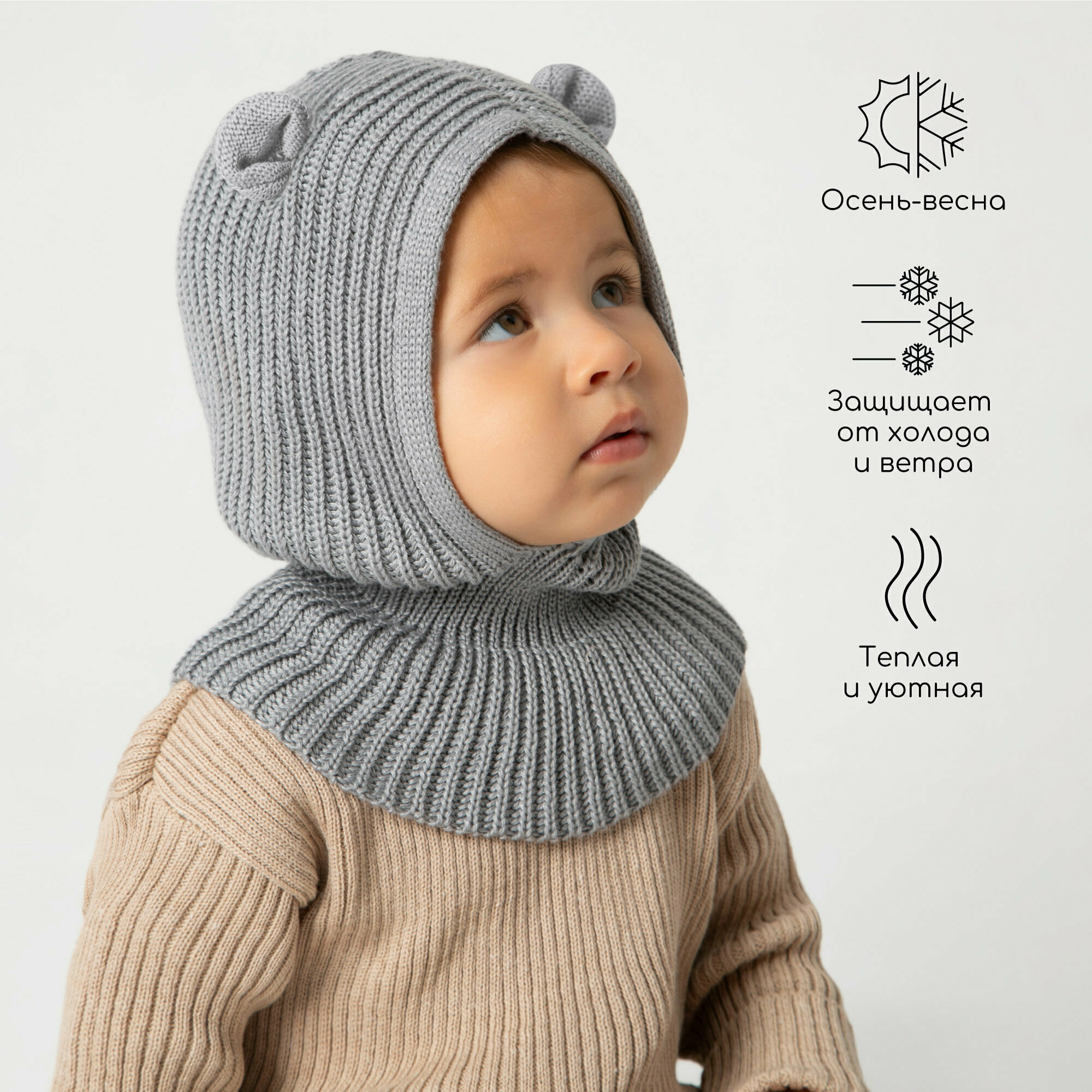 10 цен на Балаклава Amarobaby Pure Love Snug для детей, размер 48-50, серый