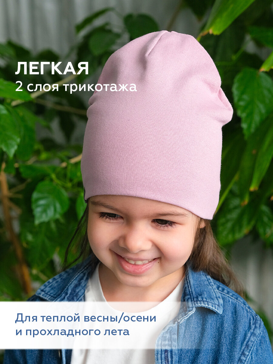 Шапка-бини JUMBI Шапка для девочек и мальчиков весна лето осень трикотажная двухслойная для девочек, размер 49-52, светло-розовый 620 ₽