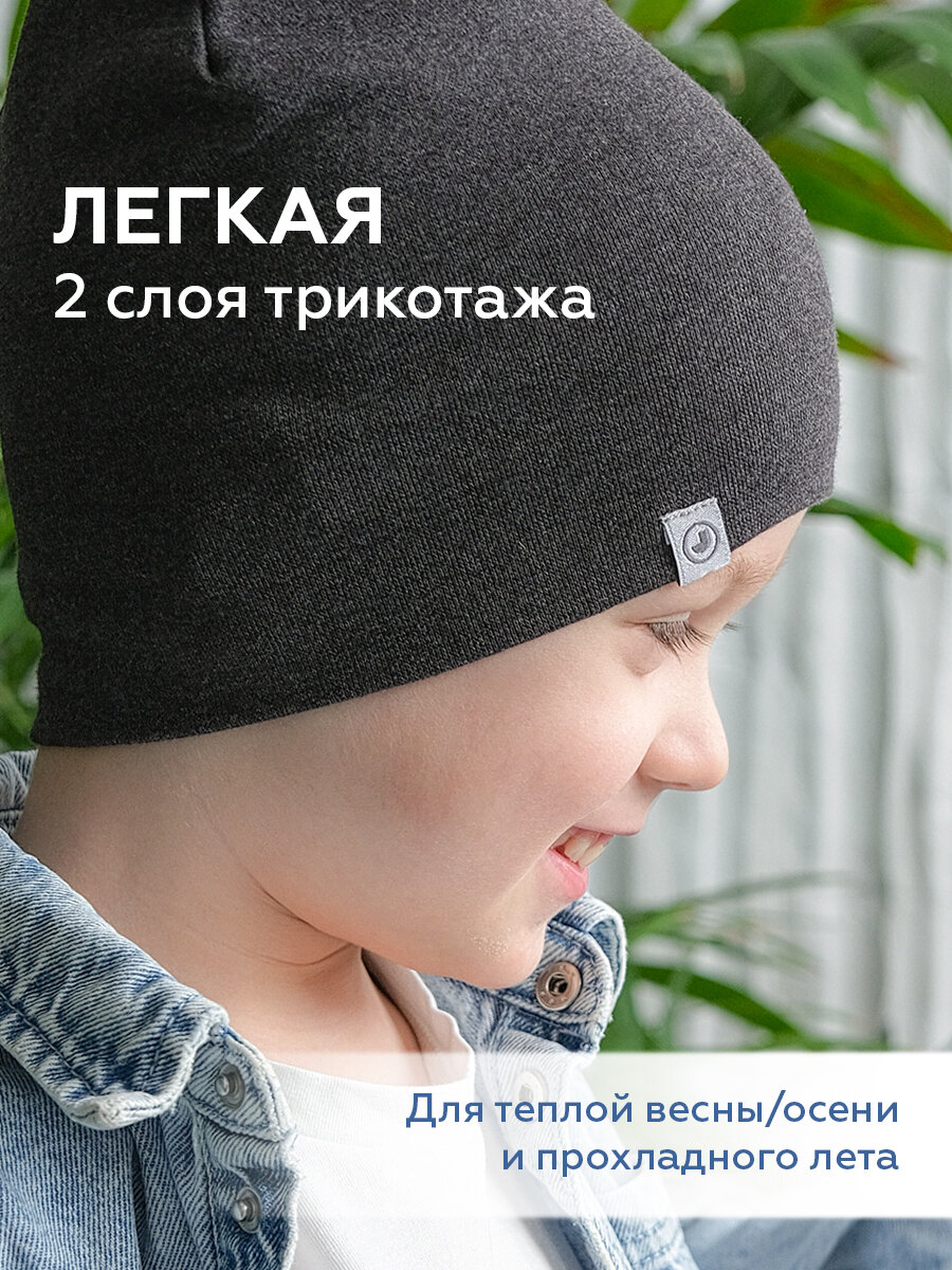 Характиристики этого товара не найдены!Отзывы на Шапка-бини JUMBI Шапка для девочек и мальчиков весна лето осень трикотажная двухслойная для детей, размер 49-52, антрацит