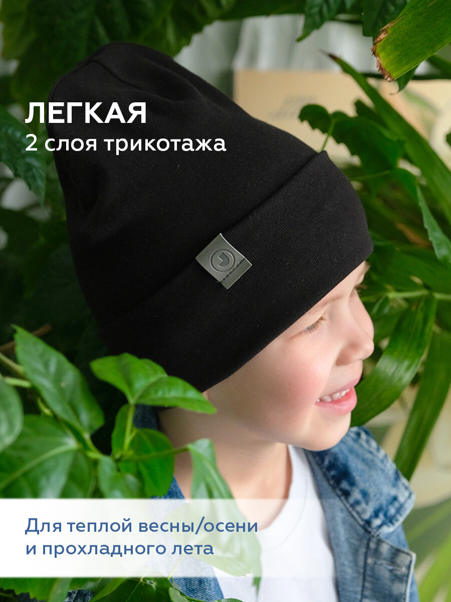 Шапка-бини JUMBI Шапка для девочек и мальчиков весна лето осень трикотажная двухслойная для детей, размер 49-52, антрацит 574 ₽