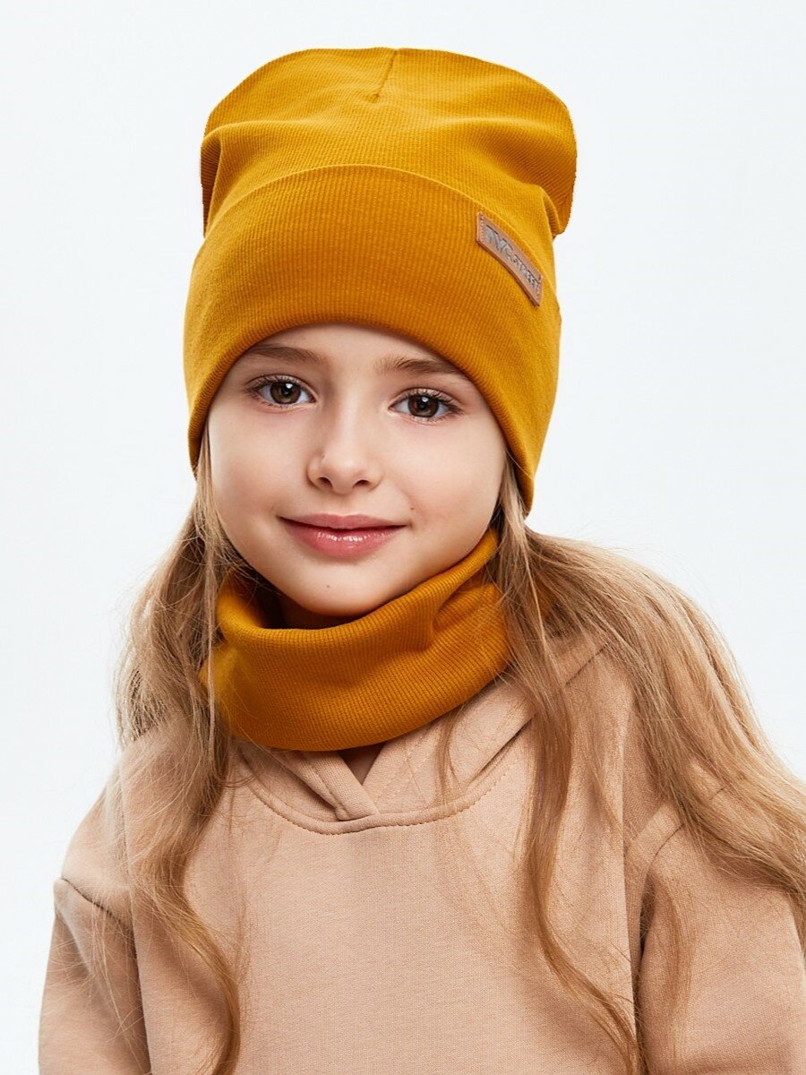 Шапка-бини NYCkids для девочек, размер 52-56, горчичный/ желтый 700 ₽