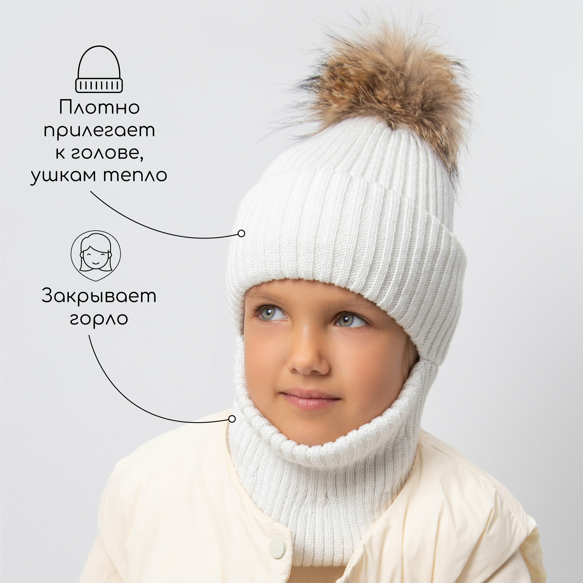 10 цен на Балаклава Amarobaby Pure Love Pompon для детей, размер 52-54, молочный