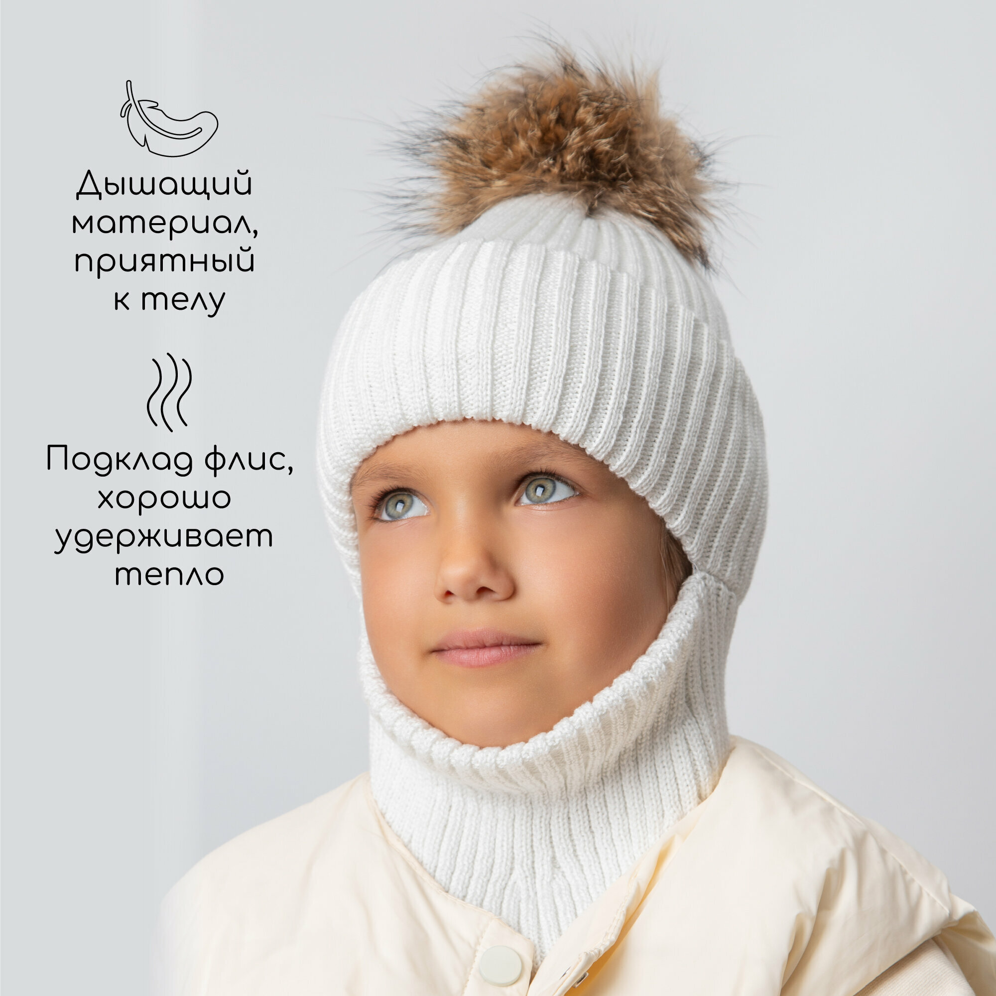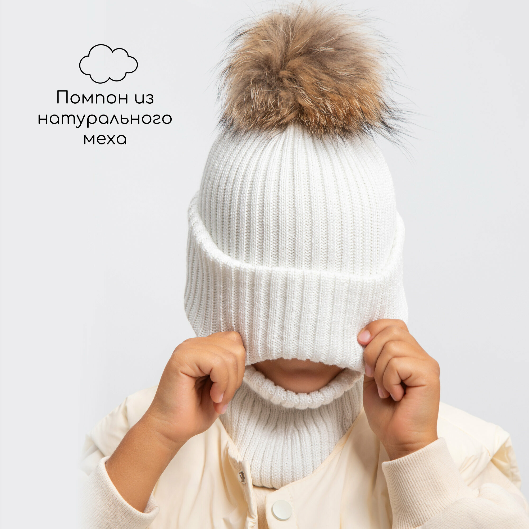 Балаклава Amarobaby Pure Love Pompon для детей, размер 50-52, молочный 2 556 ₽