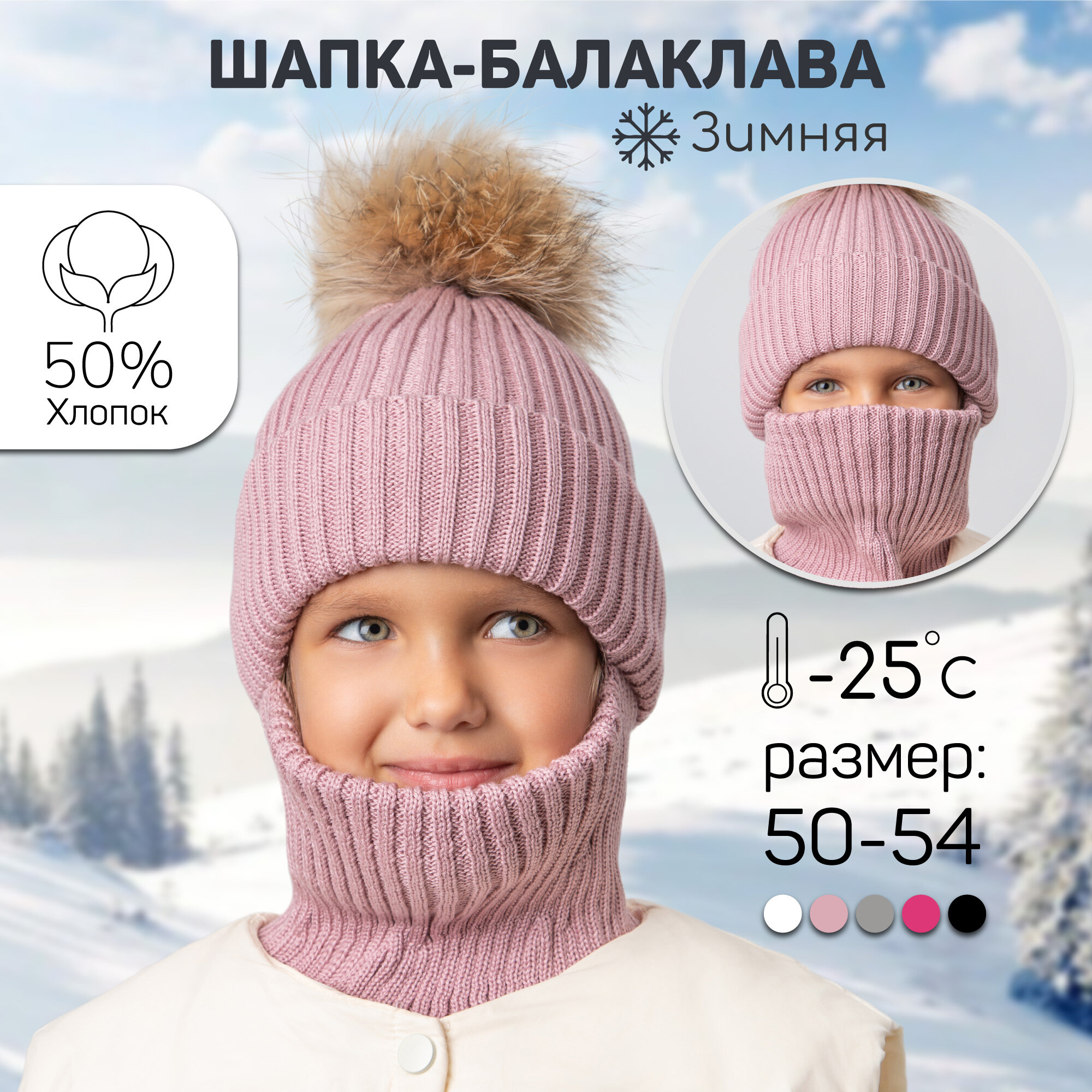 10 цен на Балаклава Amarobaby Pure Love Pompon для девочек, размер 50-52, пудровый