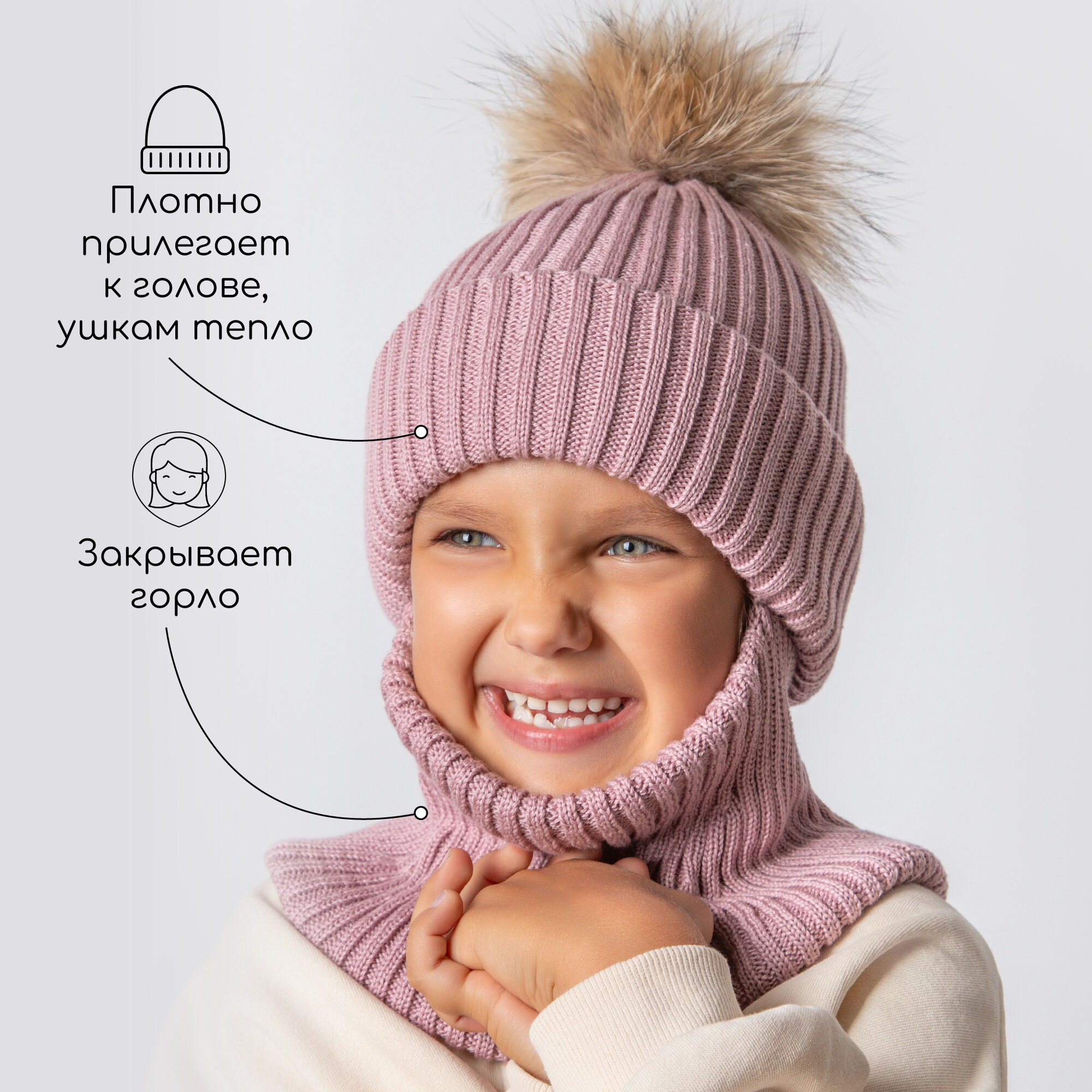 Балаклава Amarobaby Pure Love Pompon для девочек, размер 50-52, пудровый информация: