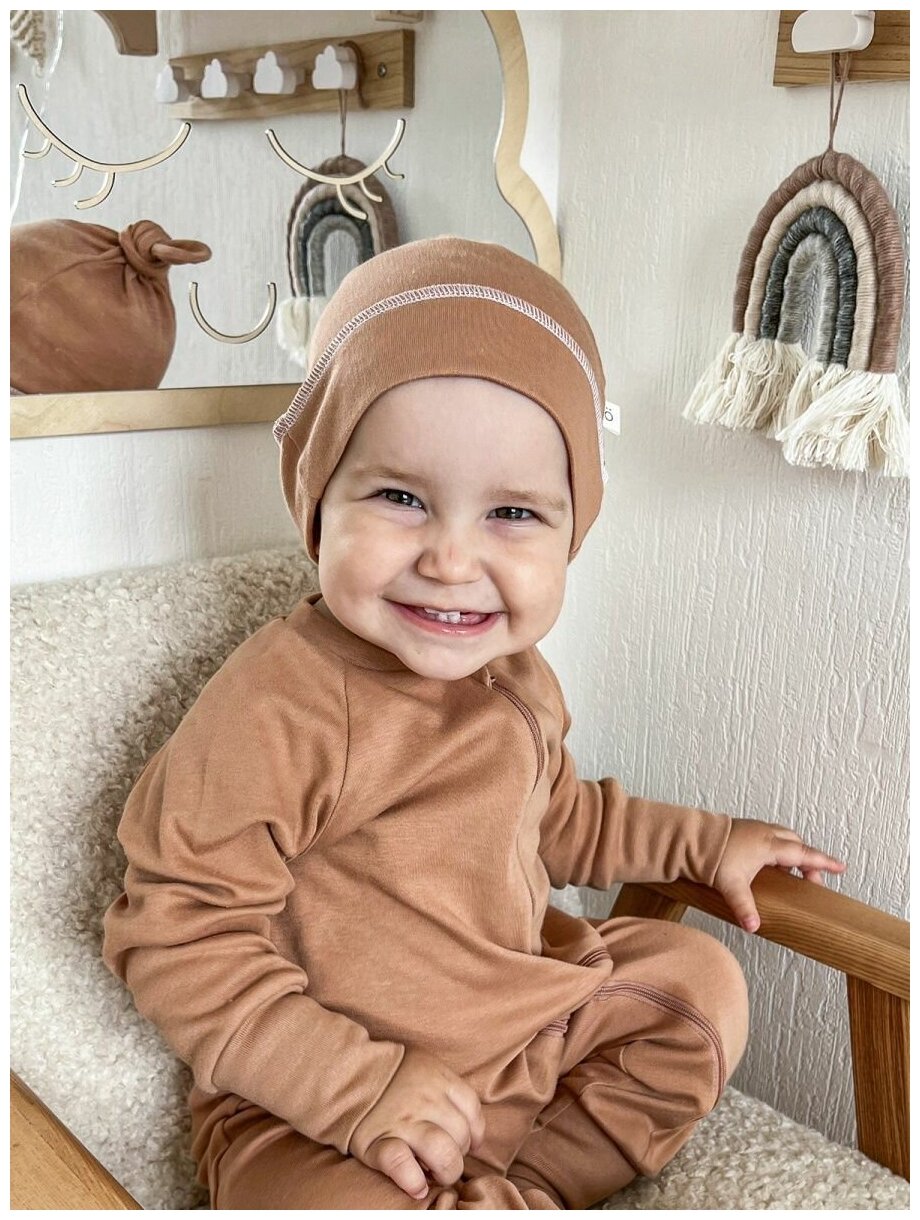 Шапка-бини Mjolk для детей, размер 36-40, коричневый, бежевый 477 ₽