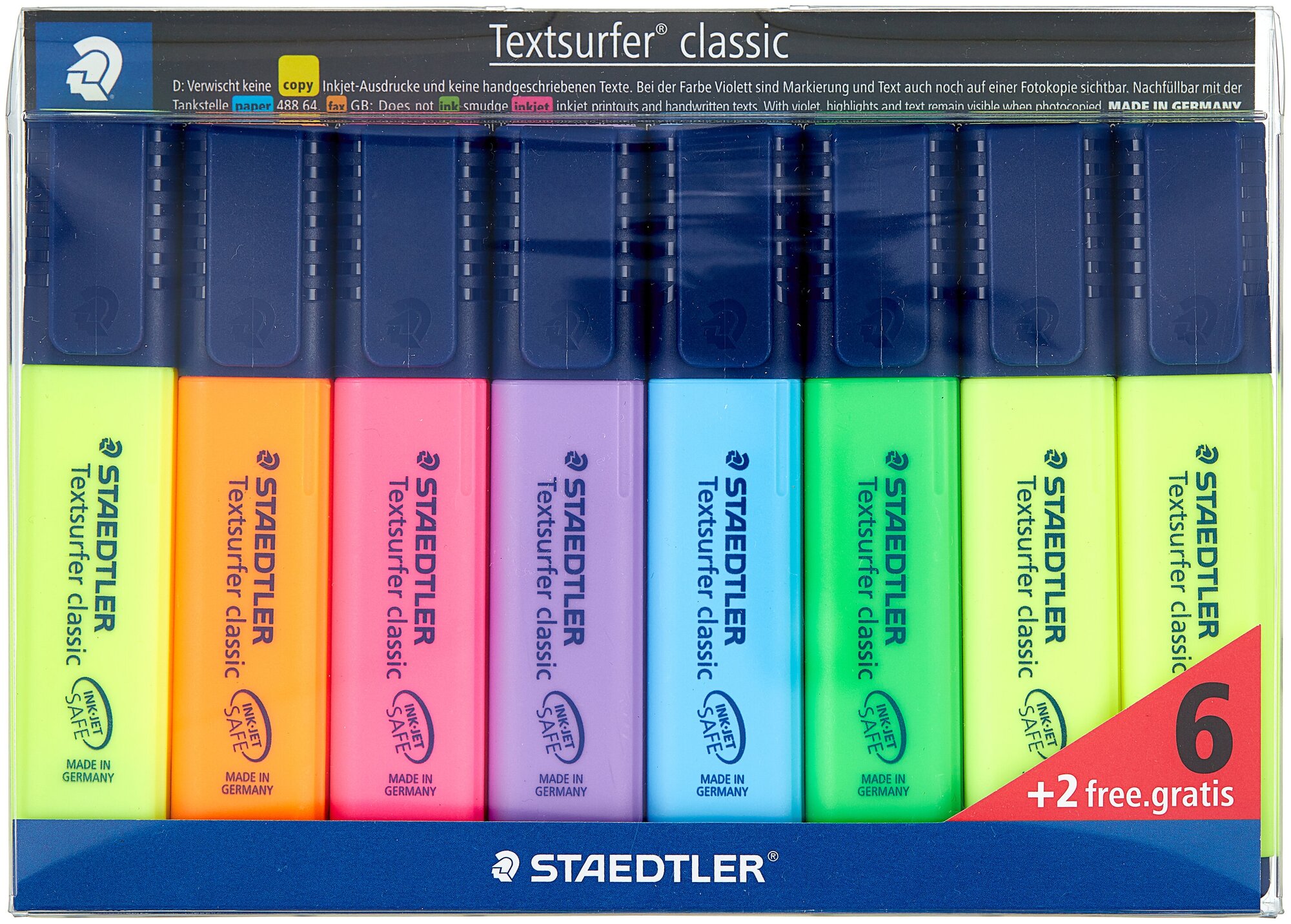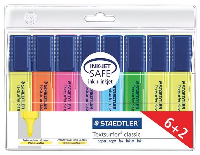Отзывы на Набор текстовыделителей STAEDTLER 6 шт., 4 ассорти + 2 желтых, "Textsurfer Classic", линия 1-5 мм, 364AWP8, 364 A WP8