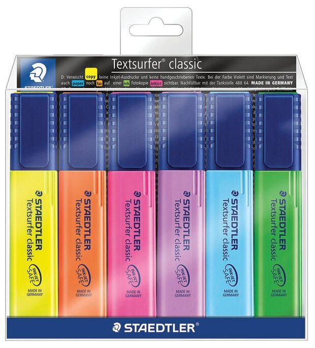 Отзывы на Текстмаркеры STAEDTLER, набор 6 штуки, "Textsurfer Classic", скошенные, 1-5 мм, 364 WP6