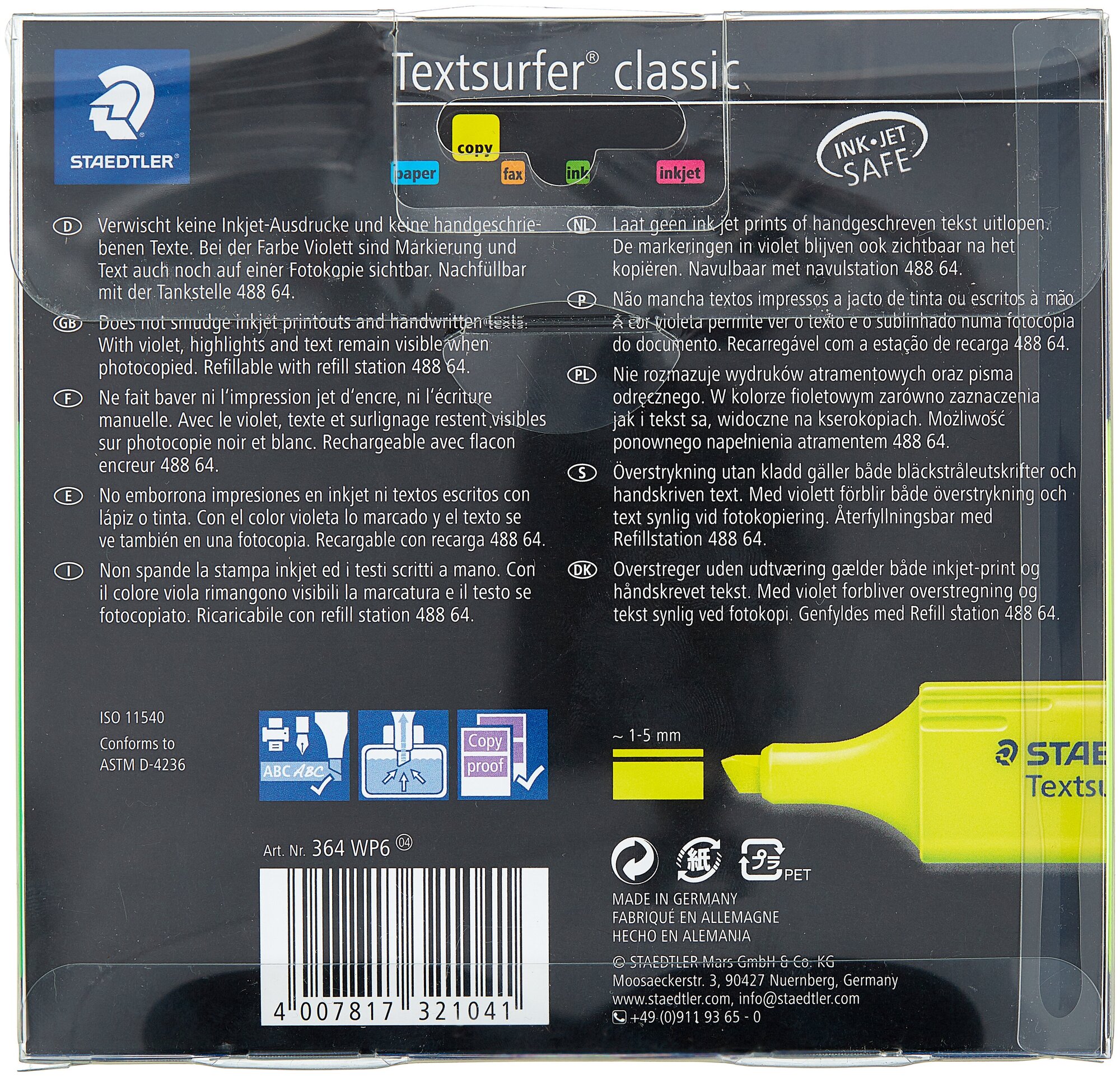 Текстмаркеры STAEDTLER, набор 6 штуки, "Textsurfer Classic", скошенные, 1-5 мм, 364 WP6 информация: