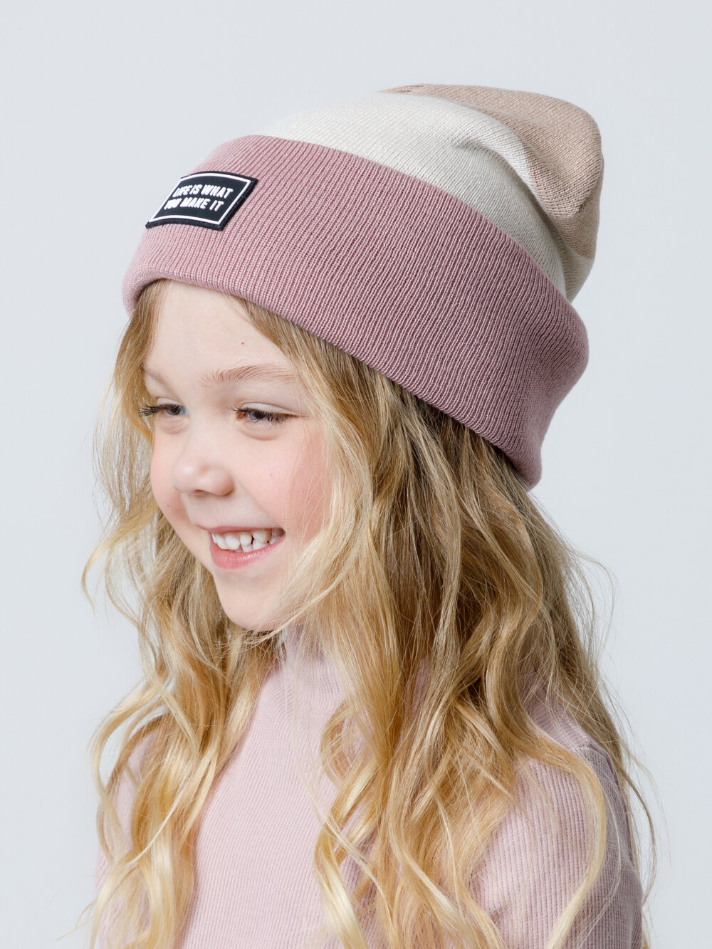 Шапка-бини crockid КВ 20426/пудрово-розовый,молочный для девочек, размер 54-56, мультиколор 1 300 ₽