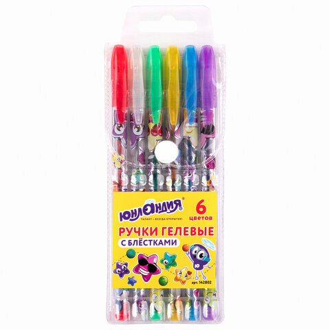 Ручки гелевые юнландия, набор 6 цветов, блестки, корпус с печатью, узел 0,7 мм, линия письма 0,5 мм, 142802 информация:
