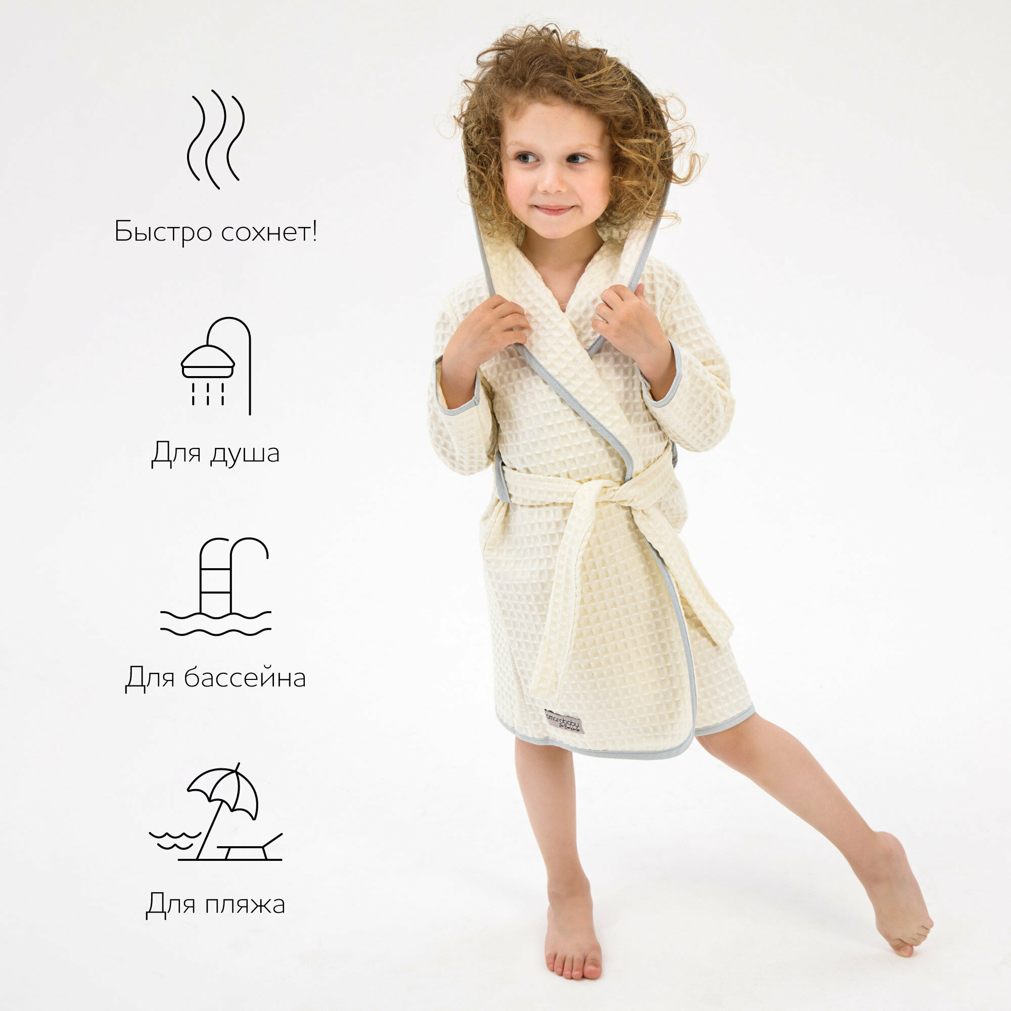 Халат Amarobaby, размер 122, молочный информация: