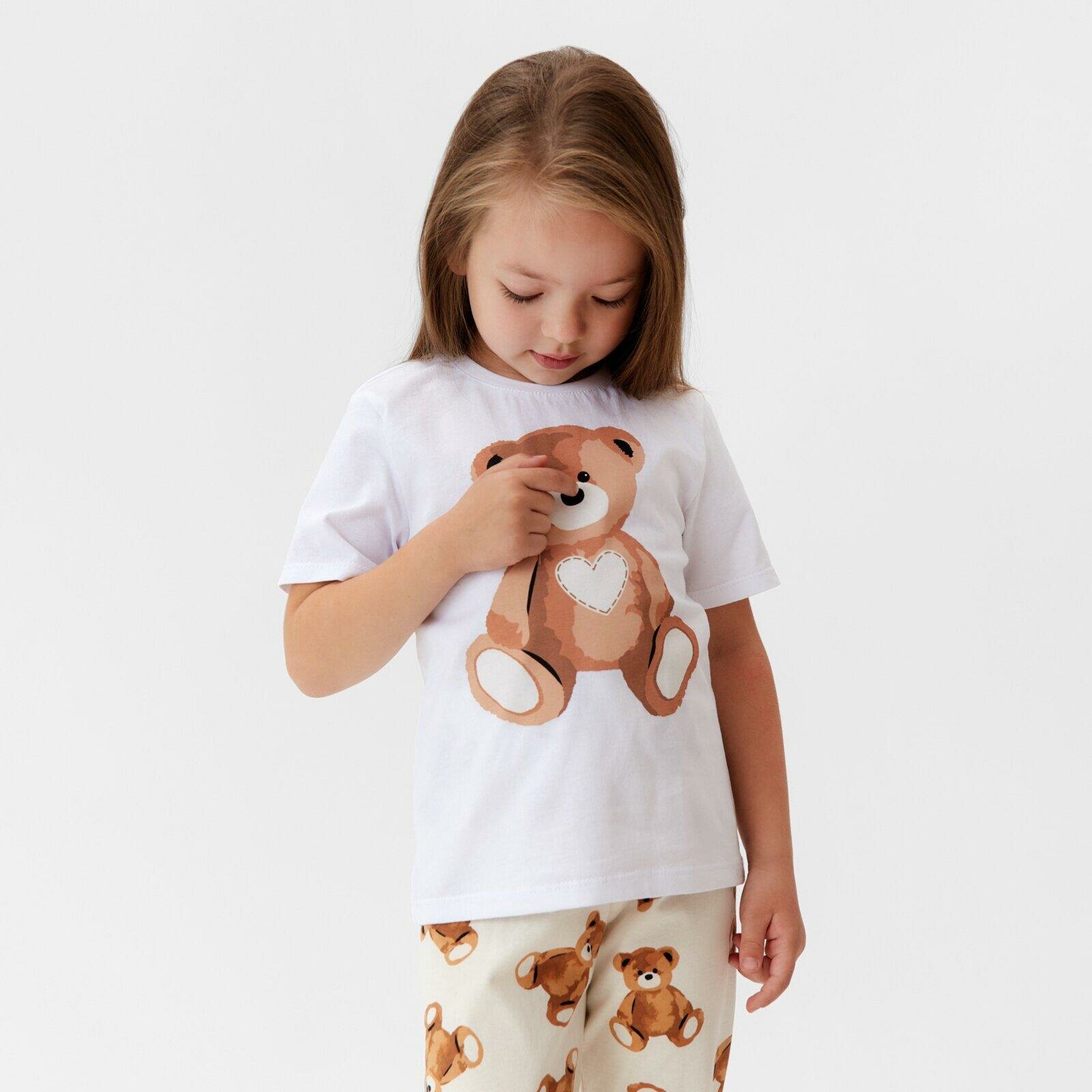 Пижама Kaftan Family look Мишки, размер 110-116 см, бежевый информация: