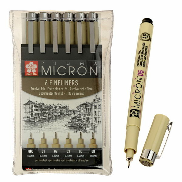 Набор капиллярных ручек Sakura Pigma Micron, 6 штук (0.2 мм, 0.25 мм, 0.3 мм, 0.35 мм, 0.45 мм, 0.5 мм), цвет чернил: черный