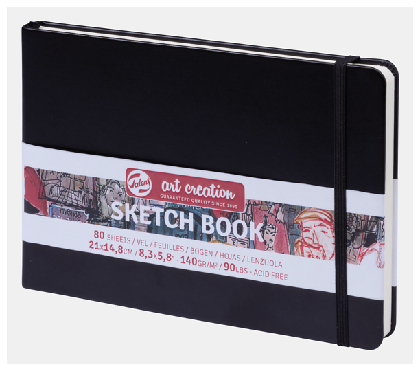 10 цен на Скетчбук 80л., 210*148 7БЦ Royal Talens Art Creation. Черный пейзаж, 140г/м2, слон. кость, на резинке, ляссе ( Артикул 342322 )